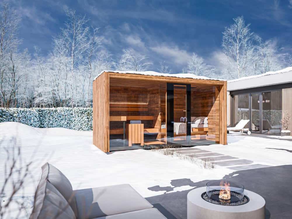 CUTE 44 unites sauna, relaxation lounge, and sheltered entrance into one cohesive structure — delivering a complete, weather-protected, and architecturally expressive outdoor wellness experience.