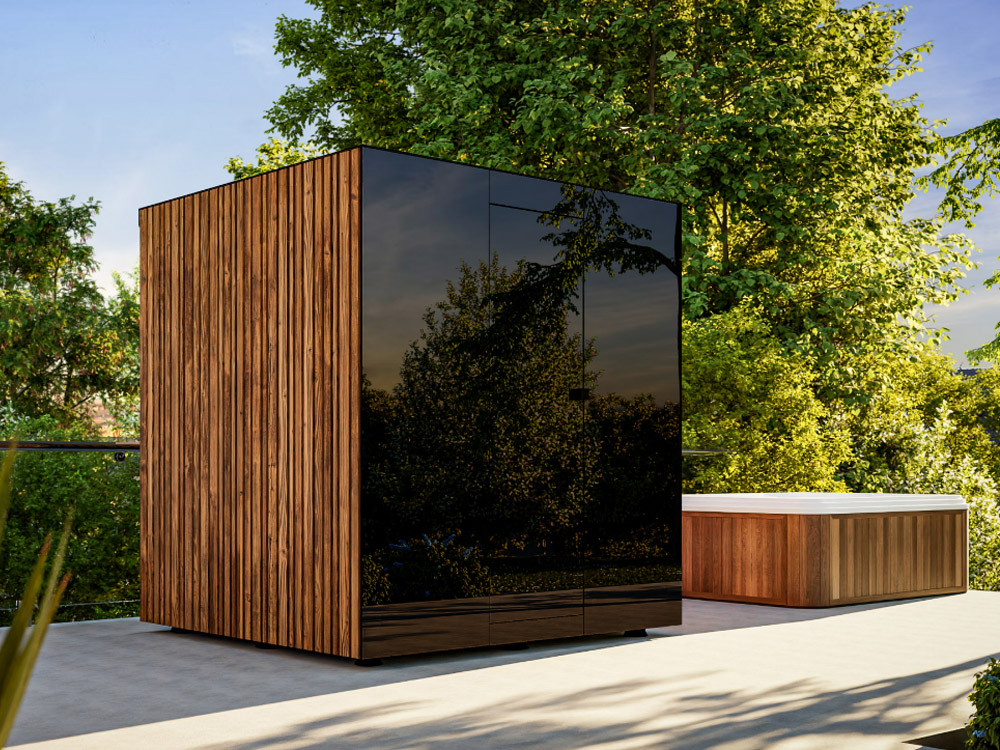 The exterior can be tailored to suit different architectural styles. In addition to classic wood finishes, the façade is available in dark color options, elegant glass, or durable HPL cladding—giving you the freedom to match the sauna seamlessly with your outdoor environment.