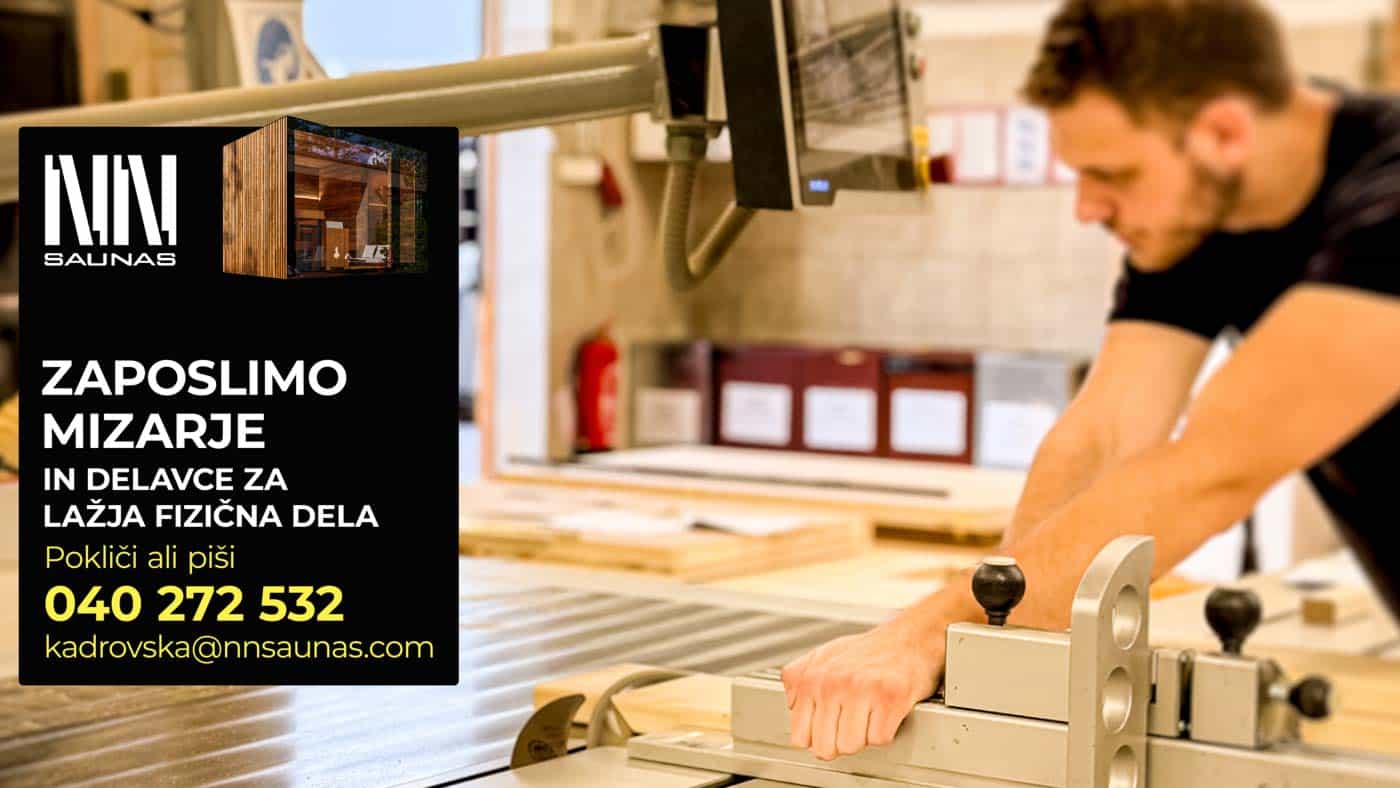 Podjetje NN Saunas, proizvajalcev savn, nagrajenih z mednarodno priznavo Red Dot, v Gočovi pri Lenartu (Slovenske gorice) išče mizarje in delavce za lažja fizična dela.